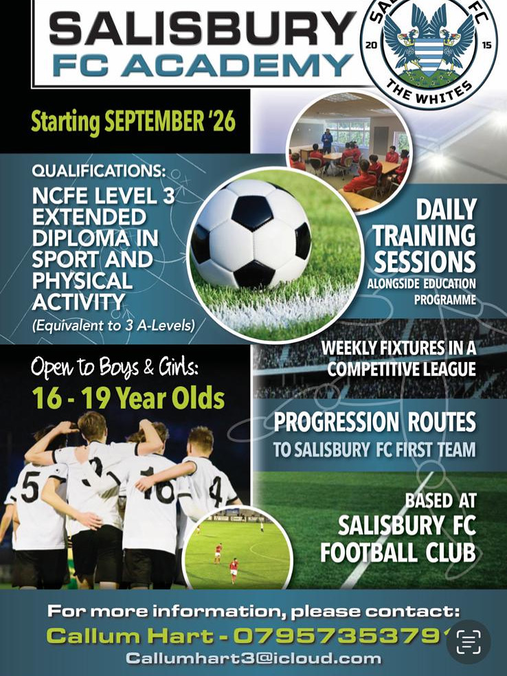 Whether your goal is to play professionally, continue into higher education, or build a career in sport, the Salisbury FC Academy is the perfect place to start your journey.