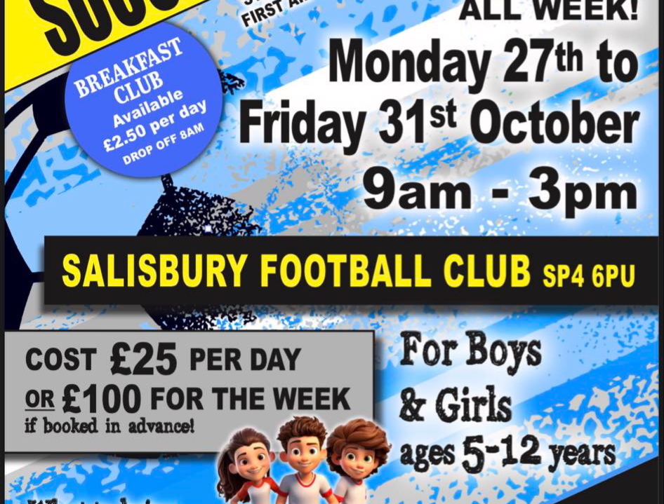 Salisbury FC are delighted to announce that our popular Soccer School is back at the Ray Mac during the October half-term!