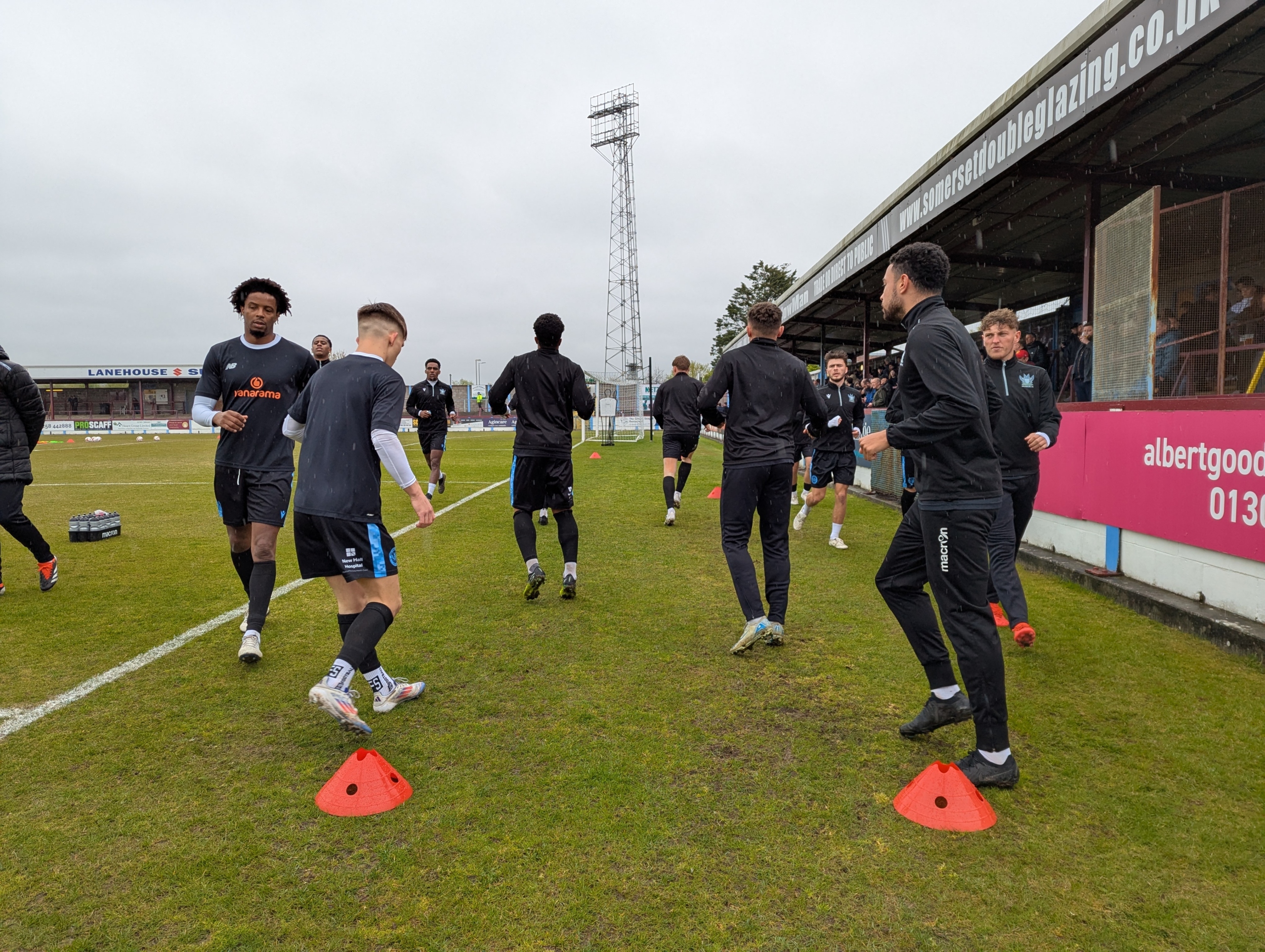 There was a delay in play when there was a big clash between Weymouth’s keeper, Buse, and Craig Fasanmade. Buse got to the ball first as it bounced in behind the Weymouth back line, and then he and Fasanmade collided. The Salisbury forward came off worse and received treatment on the pitch for a couple of minutes before being replaced by Josh Hedges with 35 minutes played.