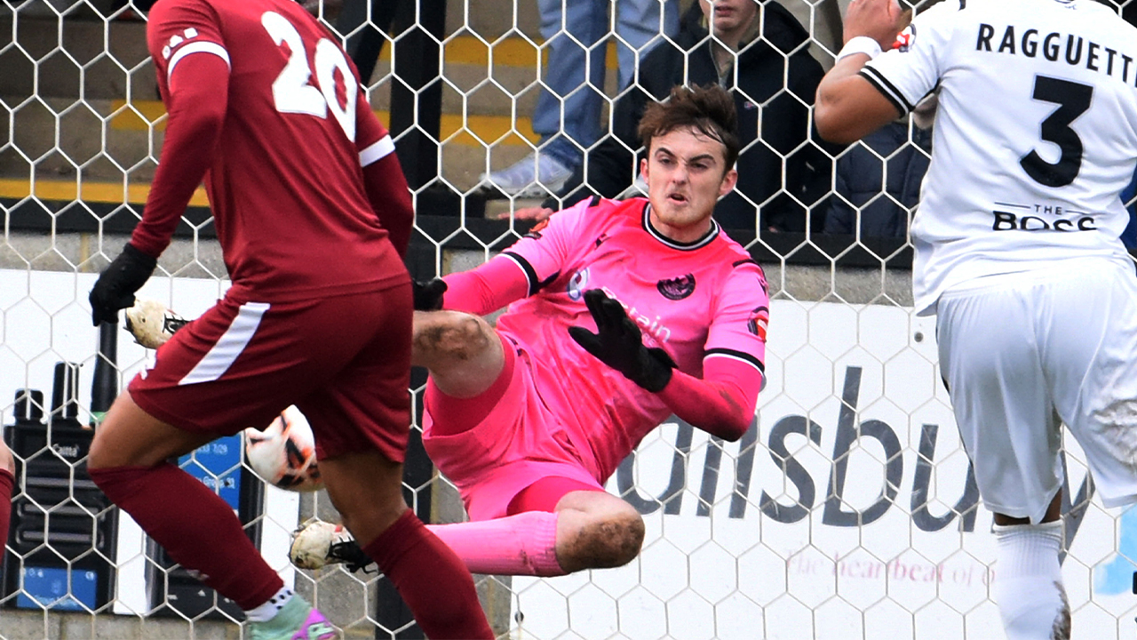 Salisbury had a chance to reduce the deficit when Josh Sommerton was bundled over in the box in the 80th minute. Noah Coppin stepped up to take the resulting penalty, but Ted Collins saved with his feet, denying The Whites a way back into the game.