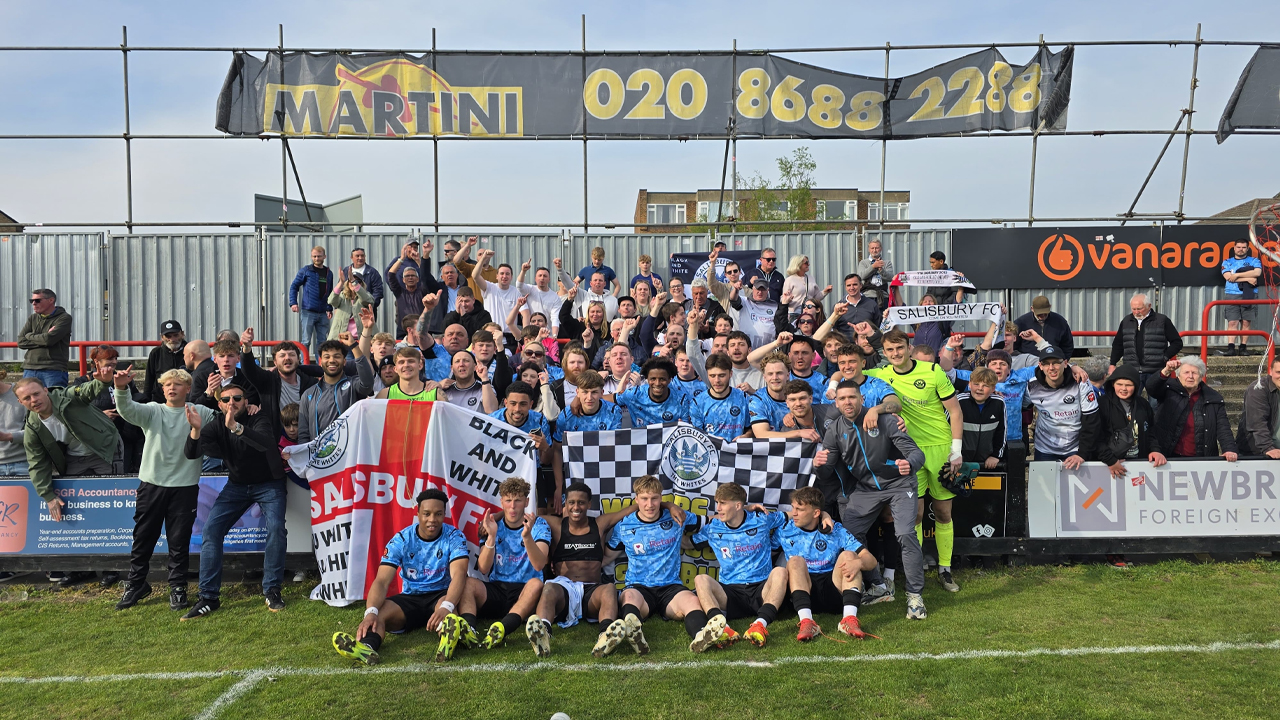 Salisbury saw out the remainder of the game fairly comfortably, there was even time for a cameo appearance for first team coach Theo Lewis in added time, before Salisbury’s players, staff and management celebrated with the travelling supporters behind the goal.